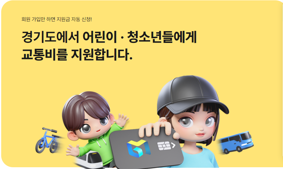 경기도에 주민등록을 두고 있는 어린이와 청소년을 대상으로 하는 교통비 지원사업 신청에 대해 안내합니다.