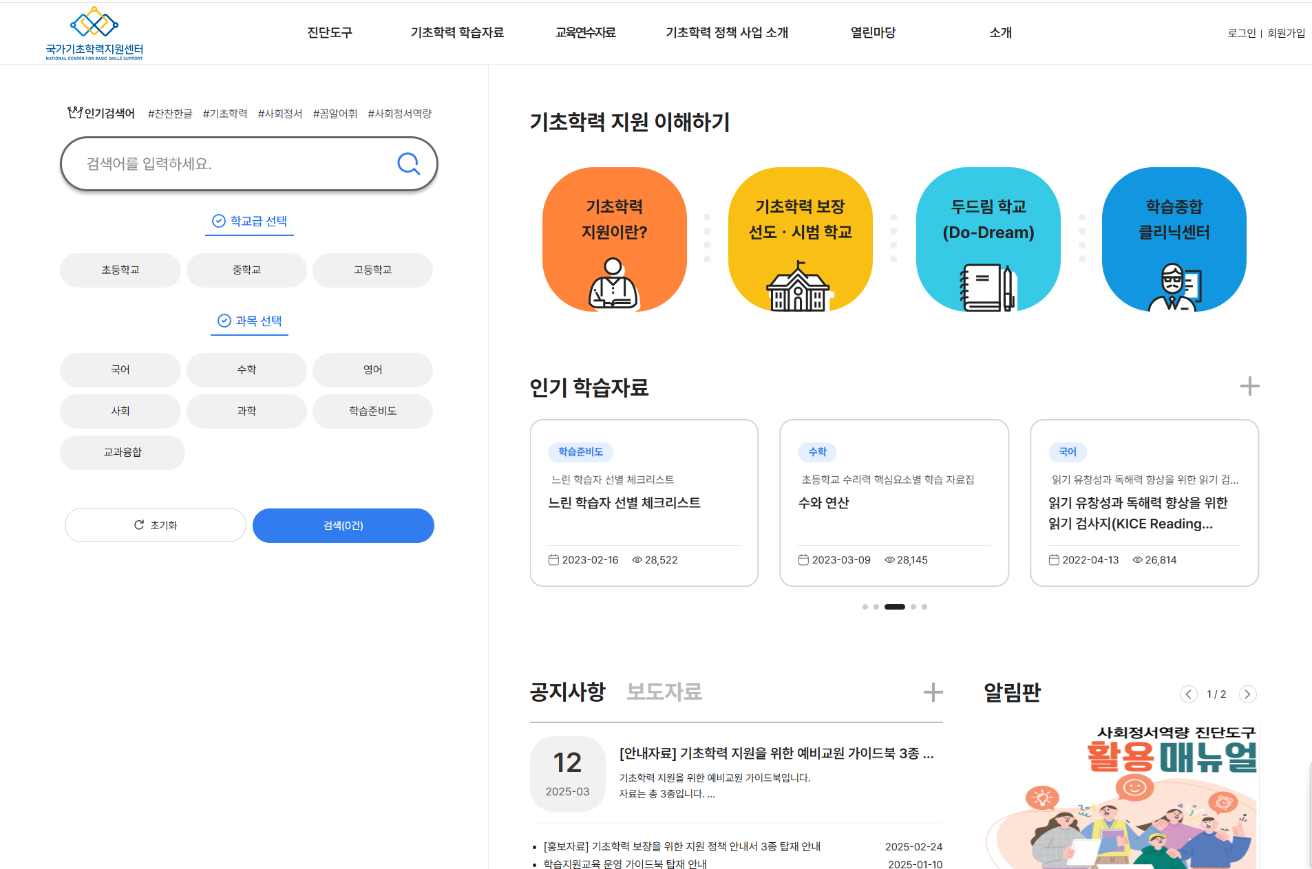 우리 아이 공부, 기초학력지원센터 홈페이지로 시작해요!