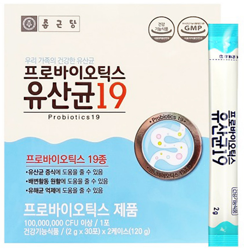 특징: 19종의 프로바이오틱스 균주와 프리바이오틱스를 포함한 제품으로, 균형 잡힌 장 건강을 지원합니다. 가격: 약 36,000원 (60일분)