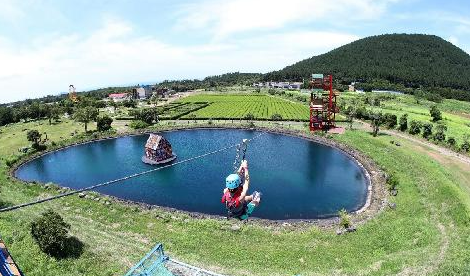 짚라인 체험은 거문오름과 녹차밭을 가로지르는 총 4개 코스로 구성되어 있으며, 운영시간은 오전 9시부터 오후 6시까지입니다(발권 마감: 오후 5시 30분).