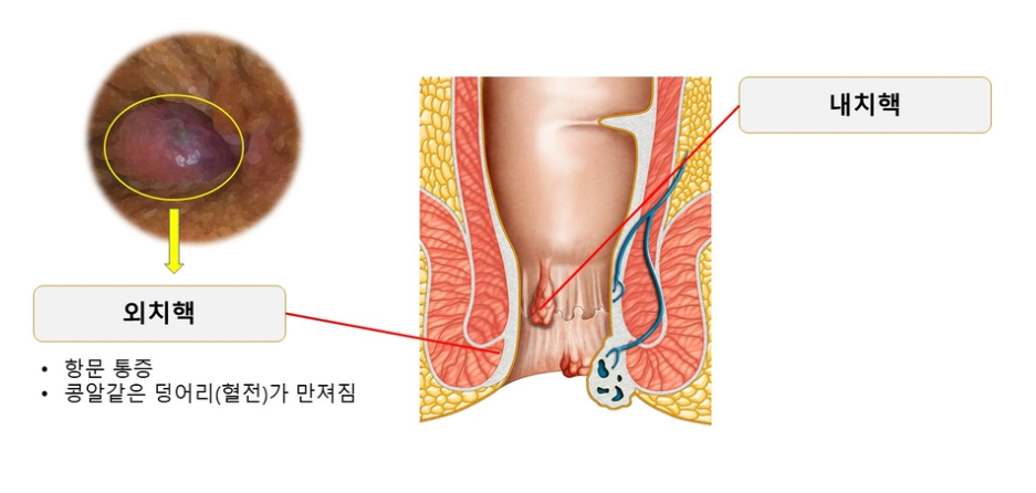 보통 환자들이 외치핵을 알게 되는 경로는 항문이 갑자기 아파서 만져보면 콩알만 한 크기의 덩어리가 만져져서 알게 됩니다.