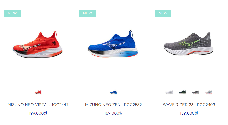 259,000원 207,200원 https://kor.mizuno.com/kr-kr/wave+rebellion+pro+3_u1gd2533/KRU1GD2533.html 259,000원 207,200원 https://kor.mizuno.com/kr-kr/wave+rebellion+pro+low_u1gd2543/KRU1GD2543.html 199,000원 https://kor.mizuno.com/kr-kr/mizuno+neo+vista_j1g
